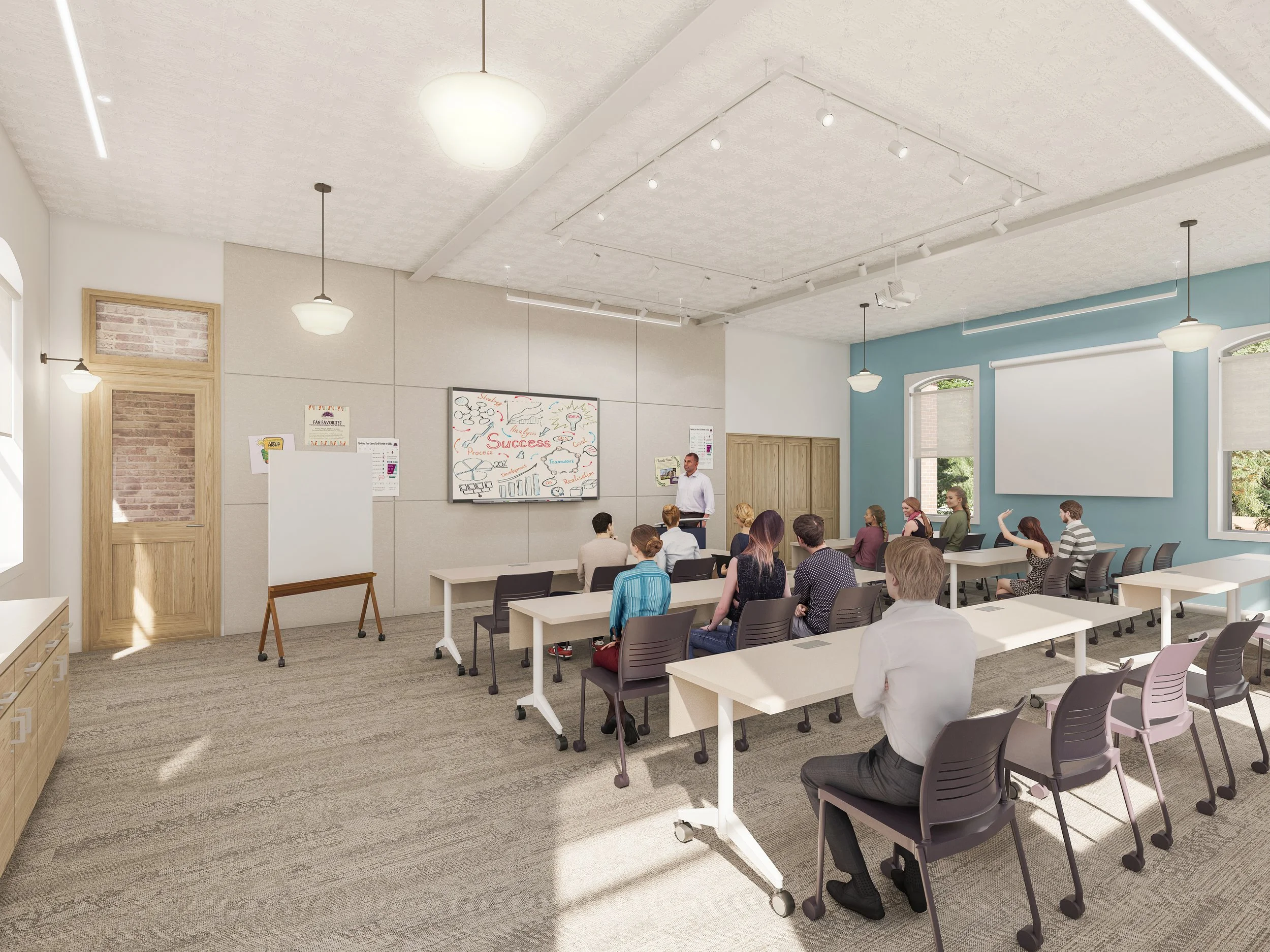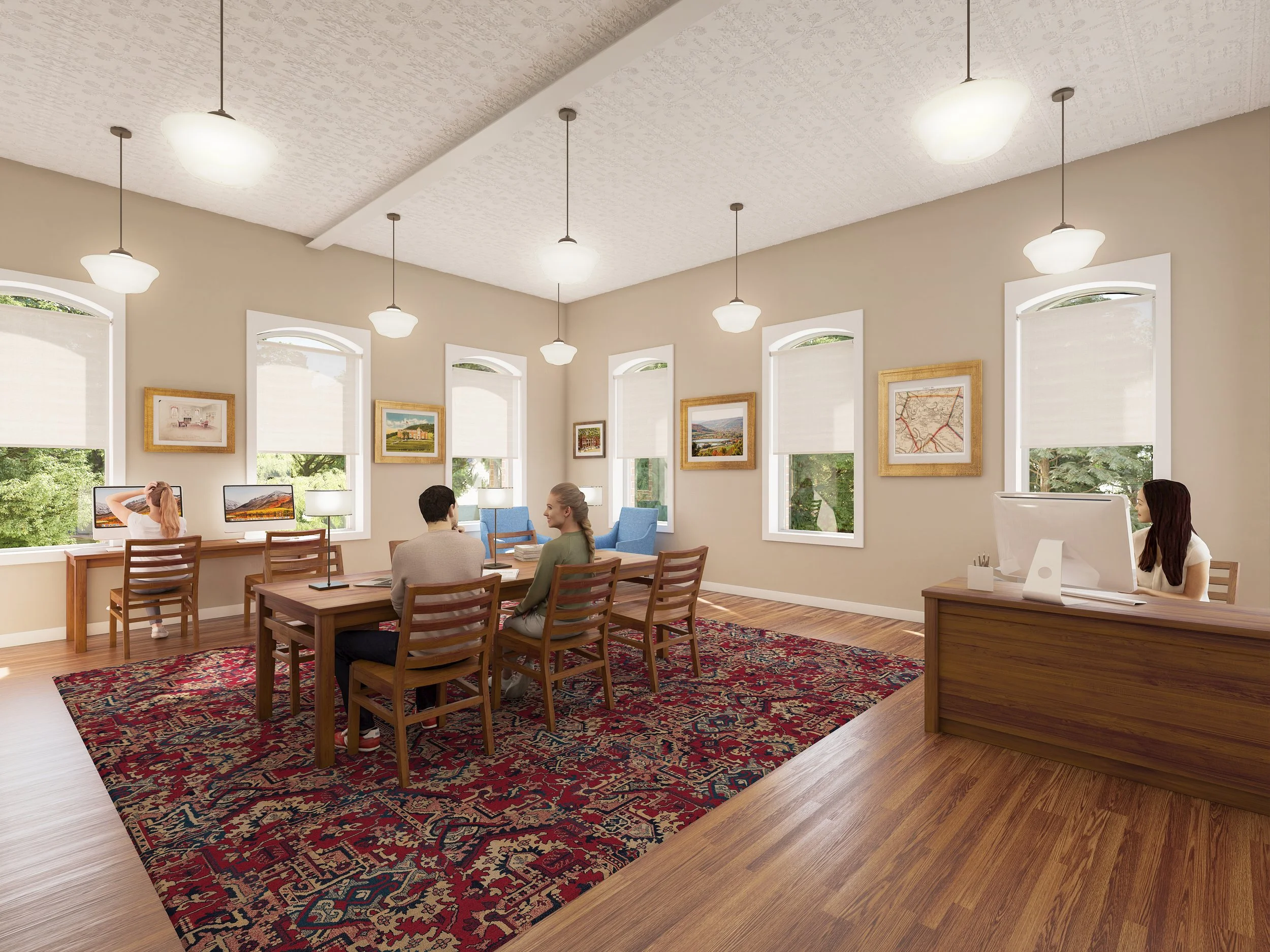 Provided program verification, space layout, conceptual renderings, and fundraising material for the next phase of the Library’s capital project building needs. The project planning focused on the back of the library (currently unoccupied annex). A future design phase would involve renovations to the currently occupied library spaces.