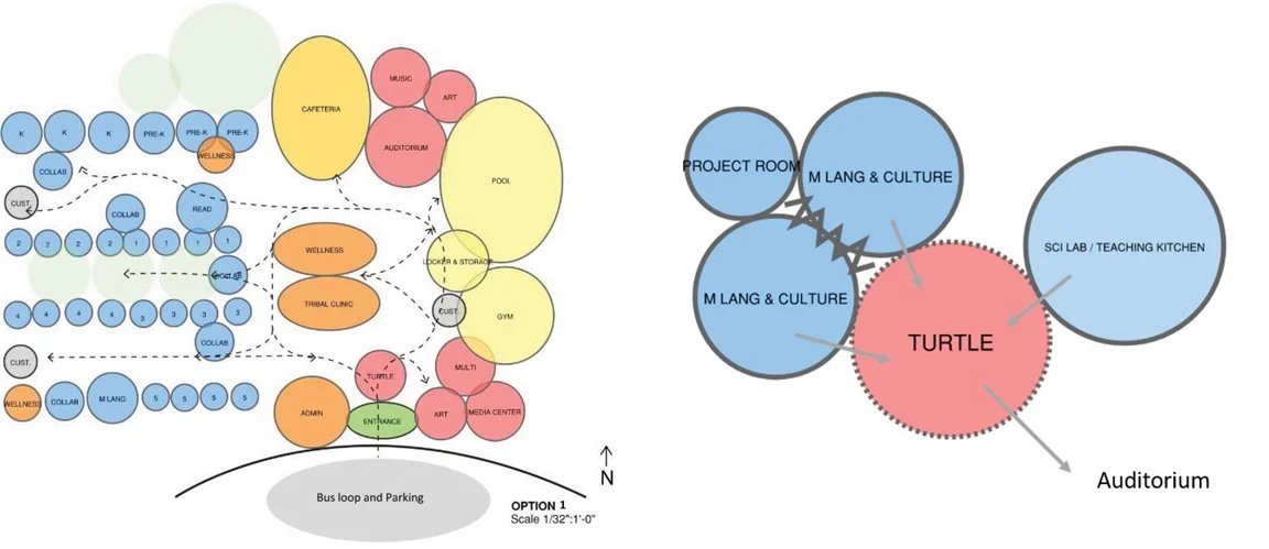 The Feasibility Study team co-created a collaborative design and engagement schedule. Students, educators, and tribal council were identified as the key voices to lead visioning and programming. A wide variety of methods were utilized including design charrettes, a community social, cultural tours, user-led site walks, and visits to completed school projects.